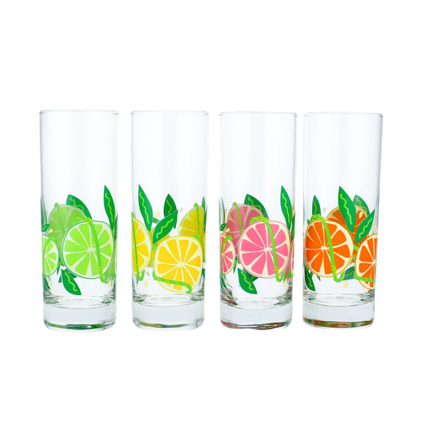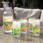 Printed citrus highball glasses with matching carafe, perfect for a summer party!