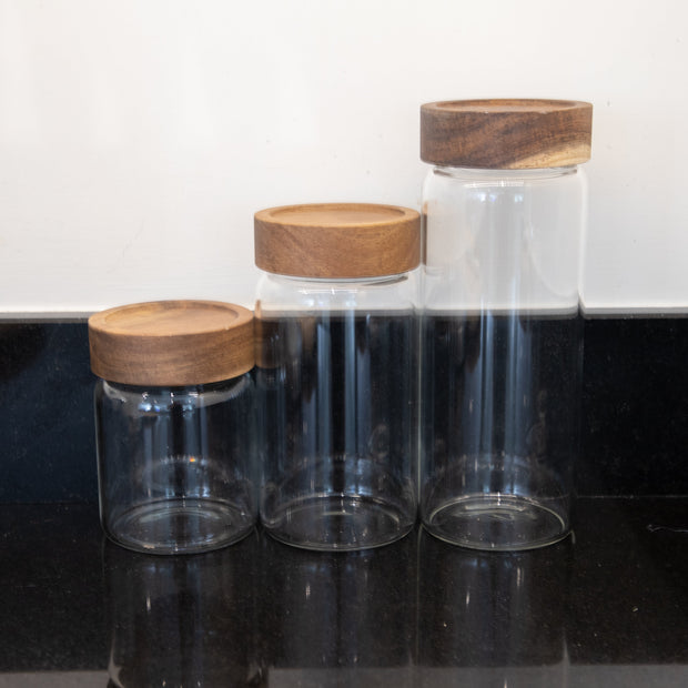 This glass jar comes with a lovely wooden screw lid and you can choose from 3 different sizes.