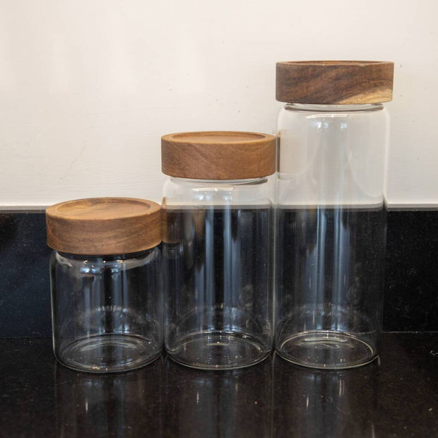This glass jar comes with a lovely wooden screw lid and you can choose from 3 different sizes.