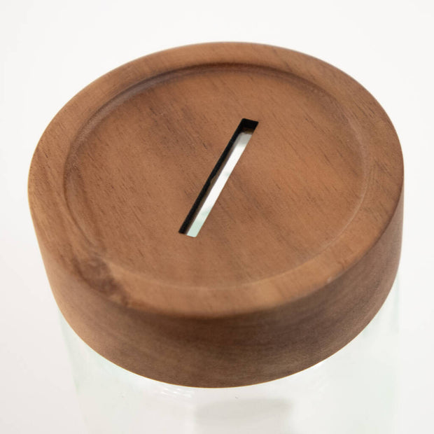 Watch through the sides of the jar as the cash builds up while to wait to use it for your next adventure.