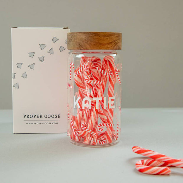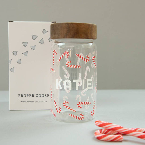 Personalised Candy Cane Glass Storage Jar - Proper Goose